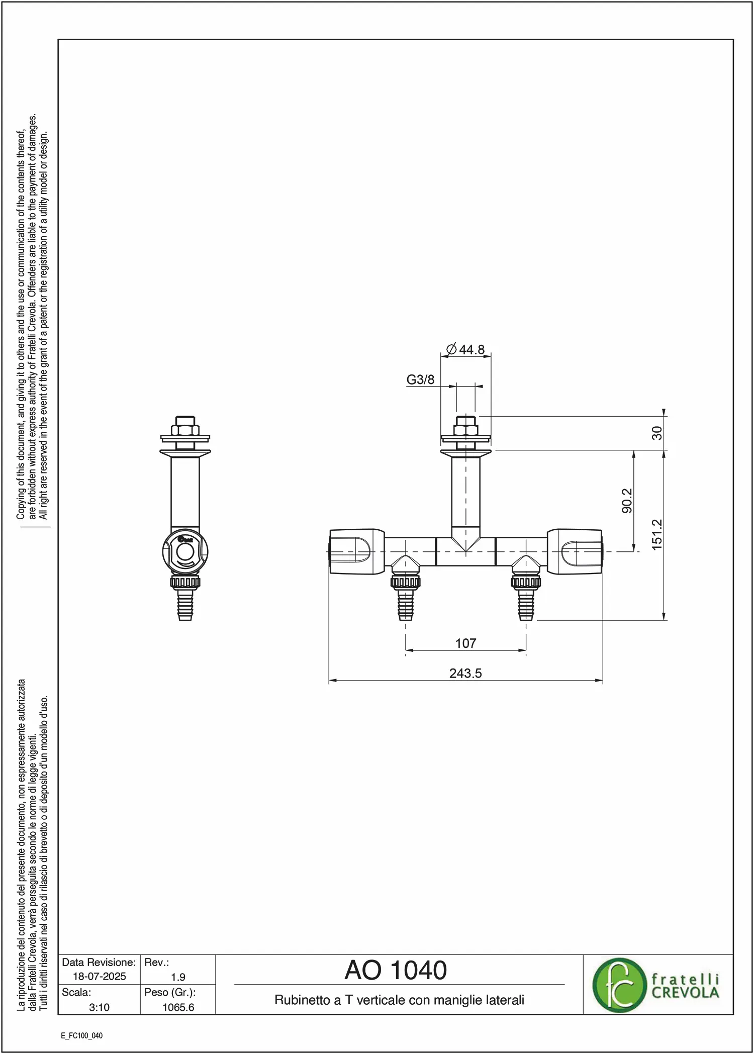 Rubinetto a T verticale con maniglie laterali