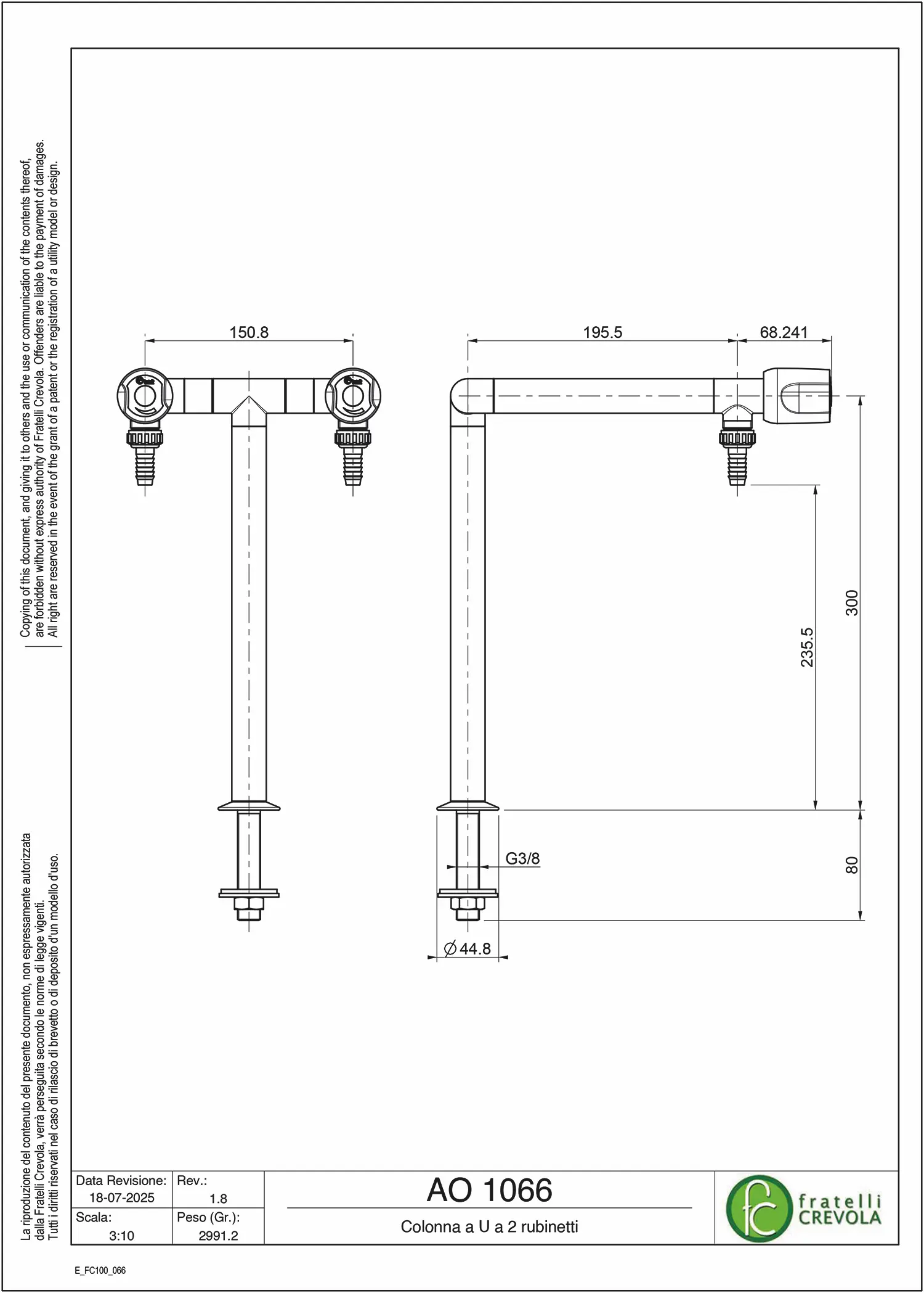 Colonna a U a 2 rubinetti