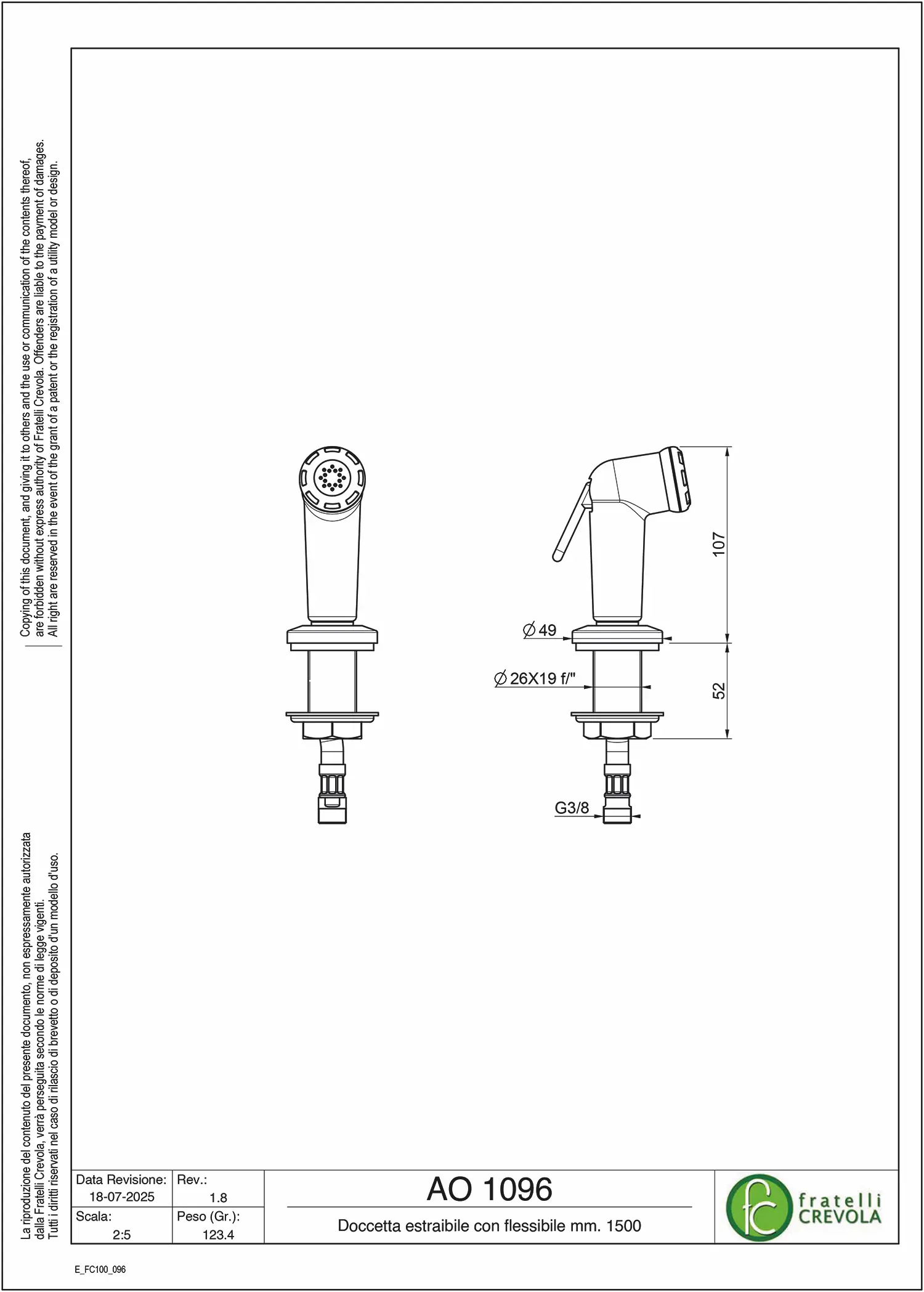 Filettature secondo la norma ISO 228/1, classe di tolleranza B.