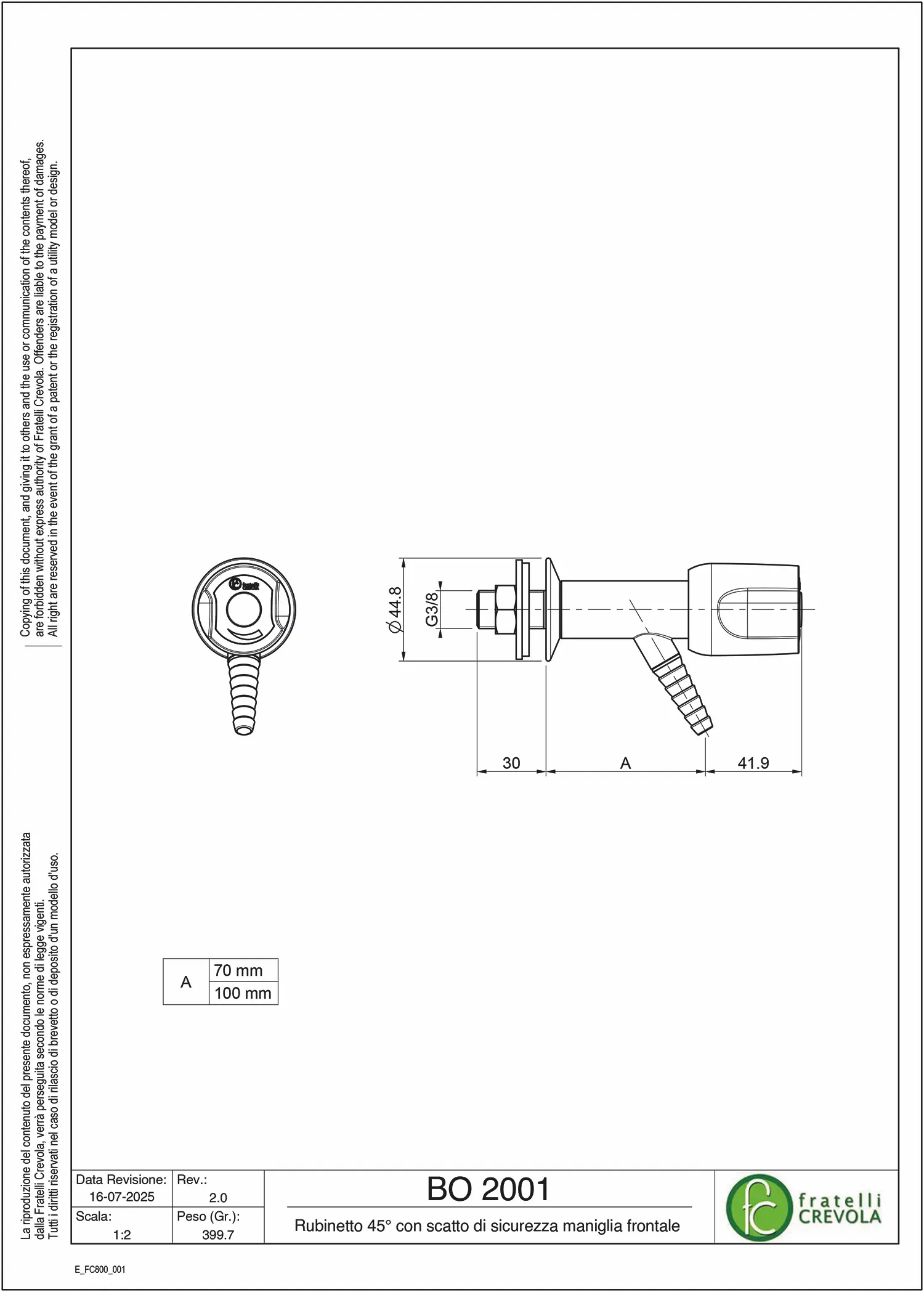 Rubinetto 45° con scatto di sicurezza maniglia frontale