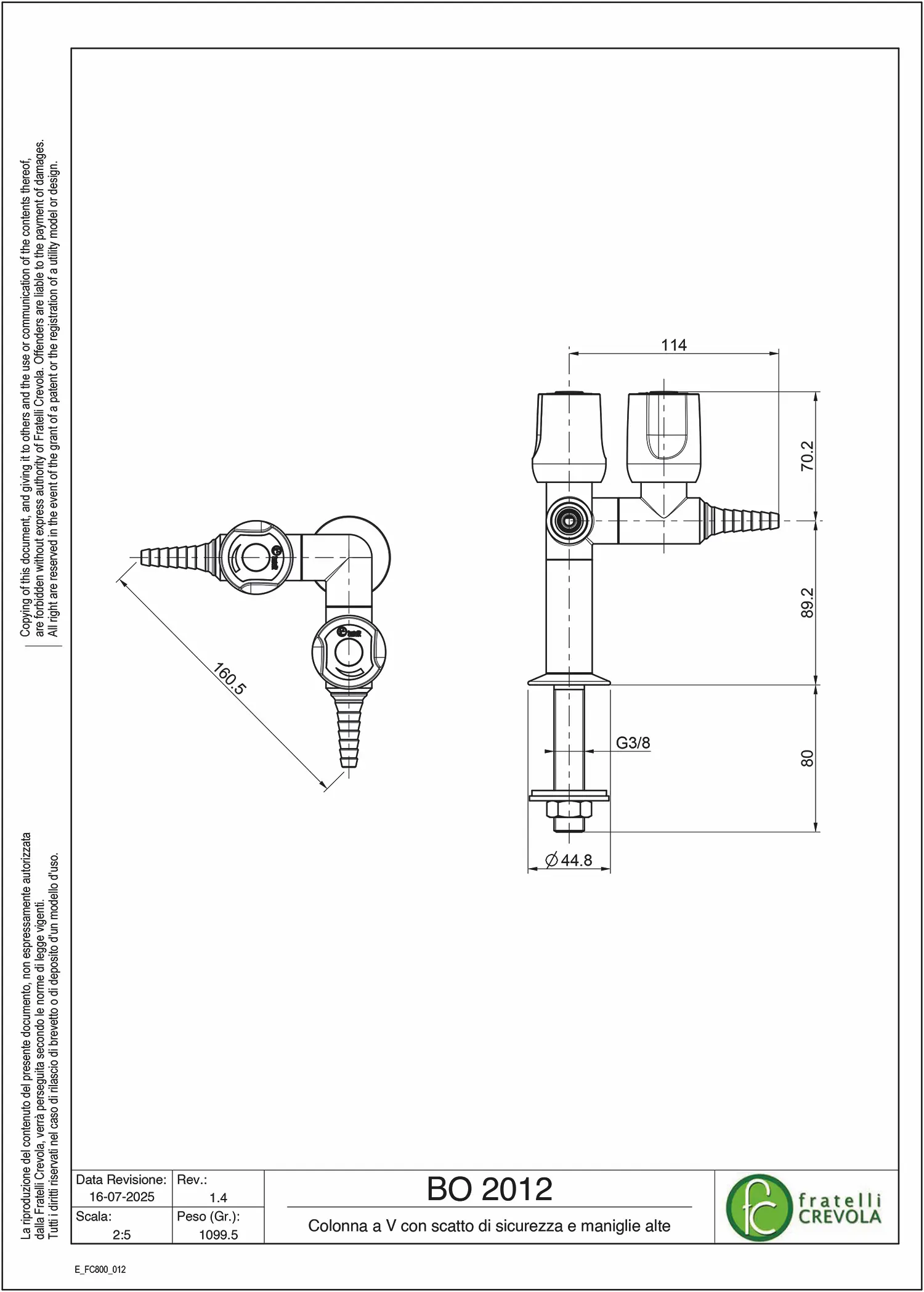 La rubinetteria per gas combustibili è dotata di vitone ceramico con scatto di sicurezza. Portagomma fisso secondo la norma DIN 12898.