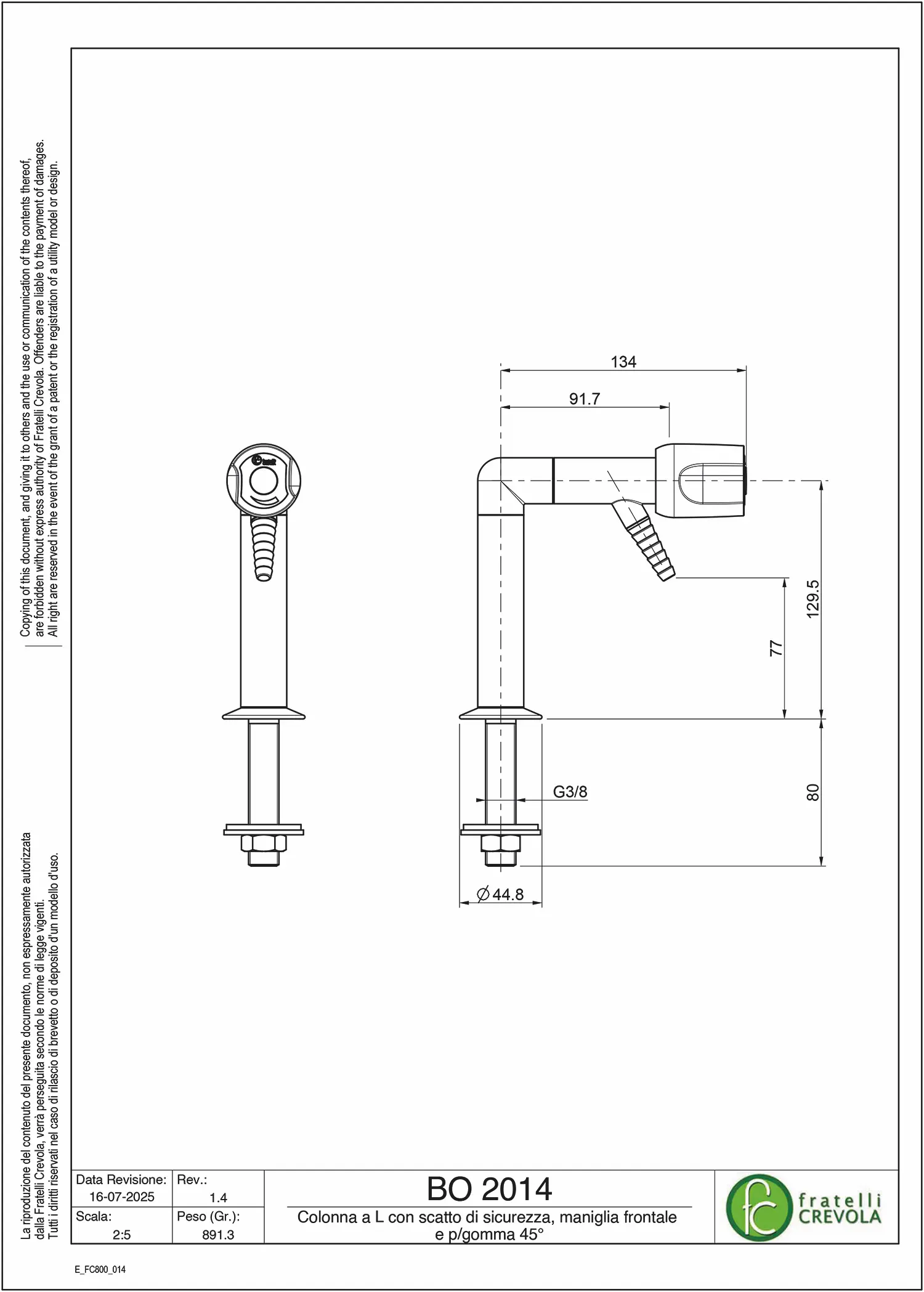 La rubinetteria per gas combustibili è dotata di vitone ceramico con scatto di sicurezza. Portagomma fisso secondo la norma DIN 12898.
