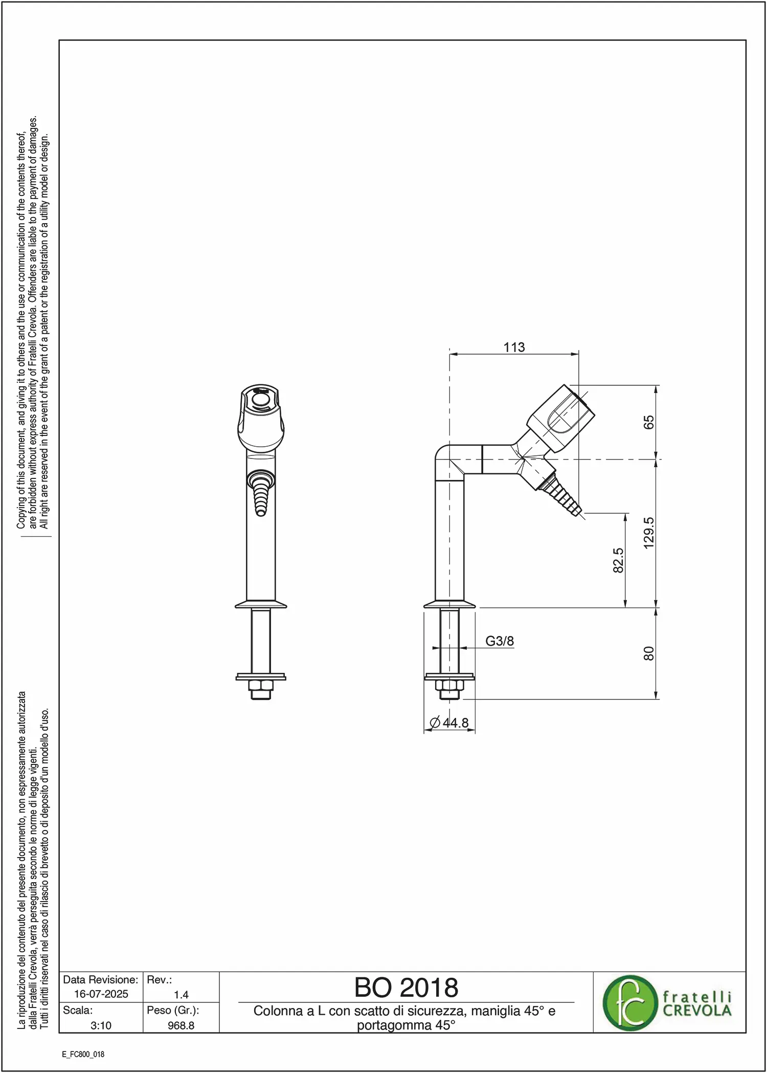 La rubinetteria per gas combustibili è dotata di vitone ceramico con scatto di sicurezza. Portagomma fisso secondo la norma DIN 12898.