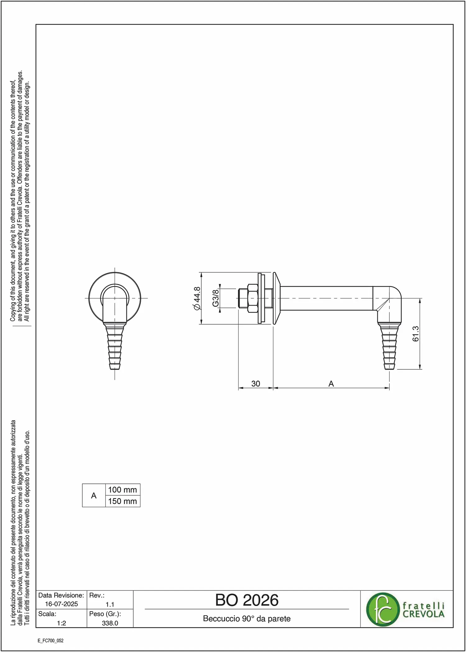 Beccuccio 90° da parete