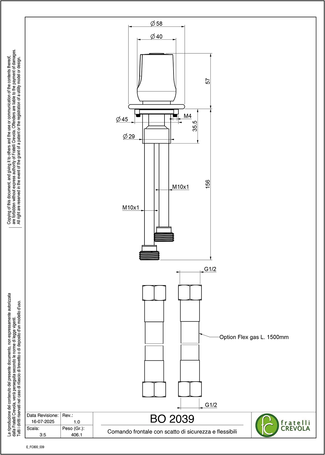 Comando montaggio frontale con scatto di sicurezza e flessibili