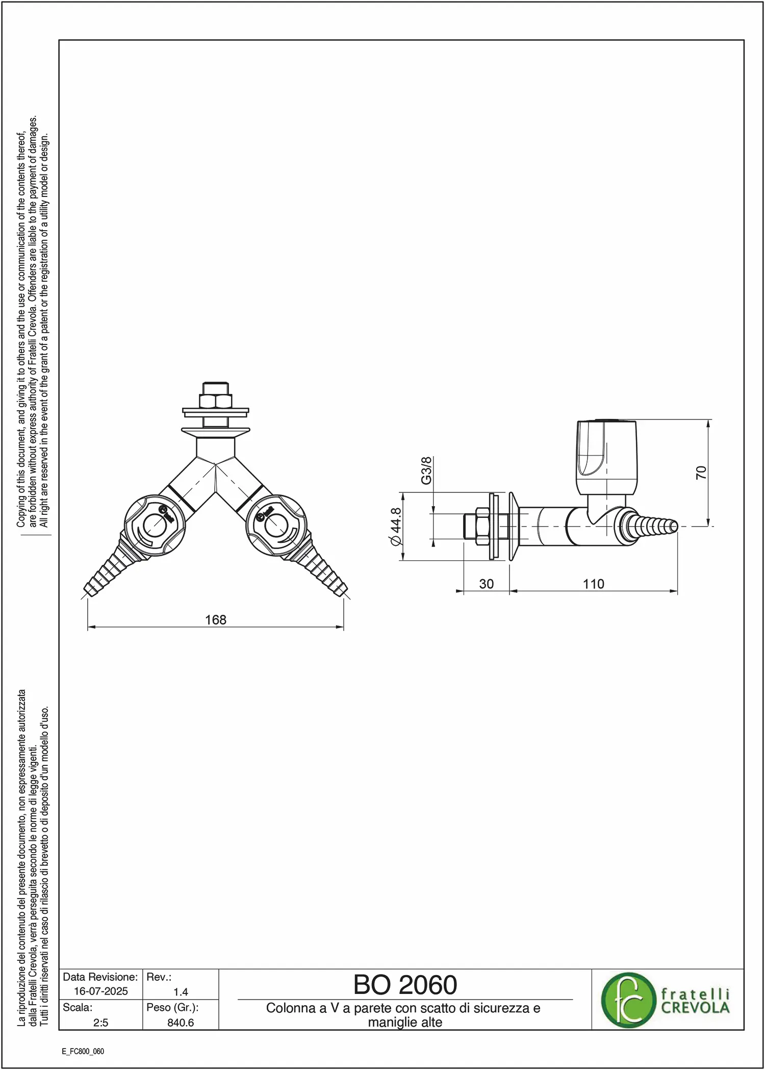 La rubinetteria per gas combustibili è dotata di vitone ceramico con scatto di sicurezza. Portagomma fisso secondo la norma DIN 12898.