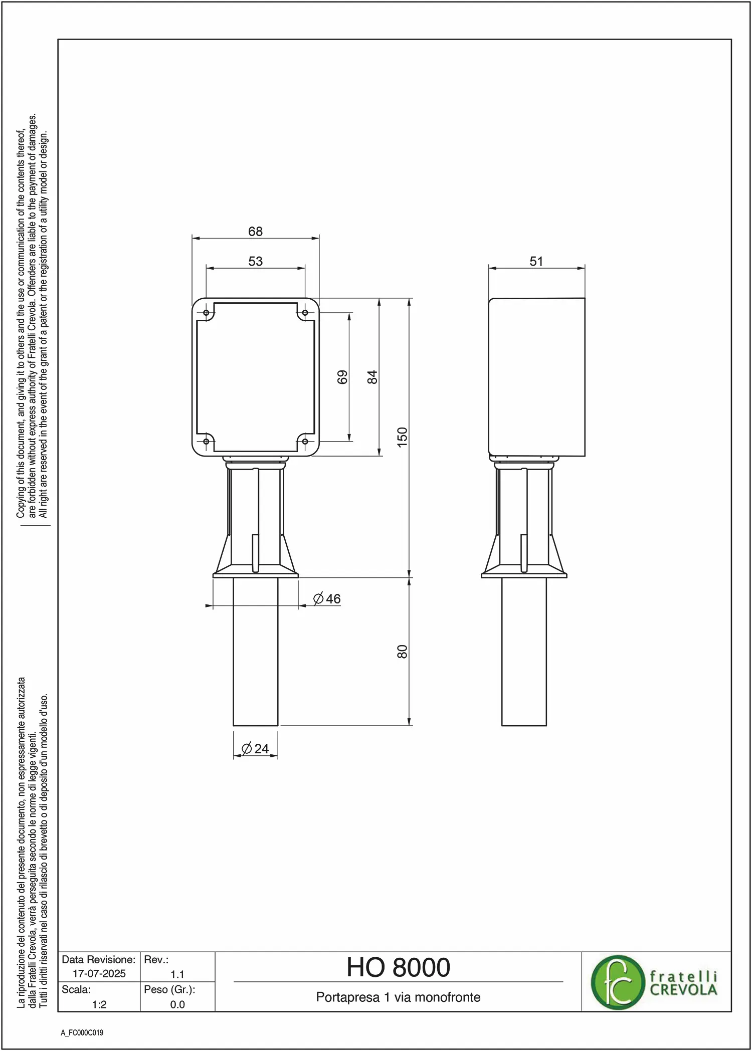 Portapresa 1 via monofronte