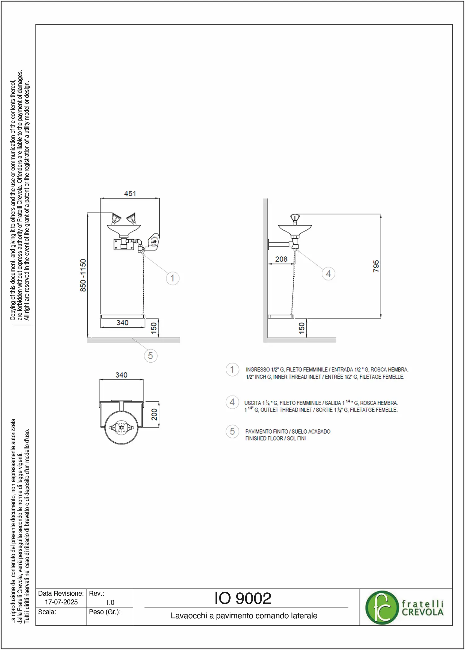 Versioni disponibili su richiesta: IO….SS con vaschetta in Acciaio Inox AISI304 IO….X in Acciaio Inox AISI304 IO….XX in Acciaio Inox AISI316
