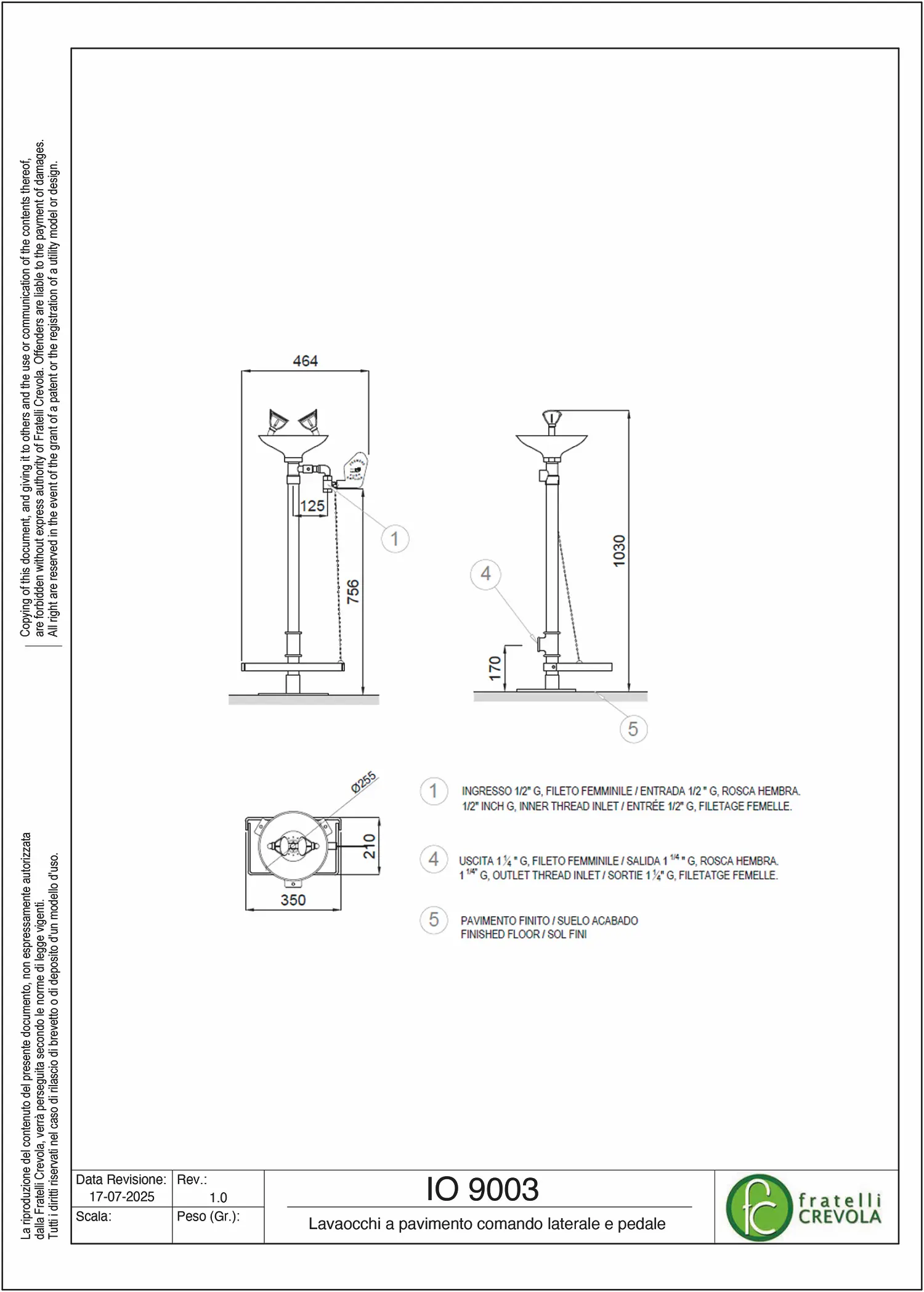 Lavaocchi a parete singolo fisso con flex inox mm.1500