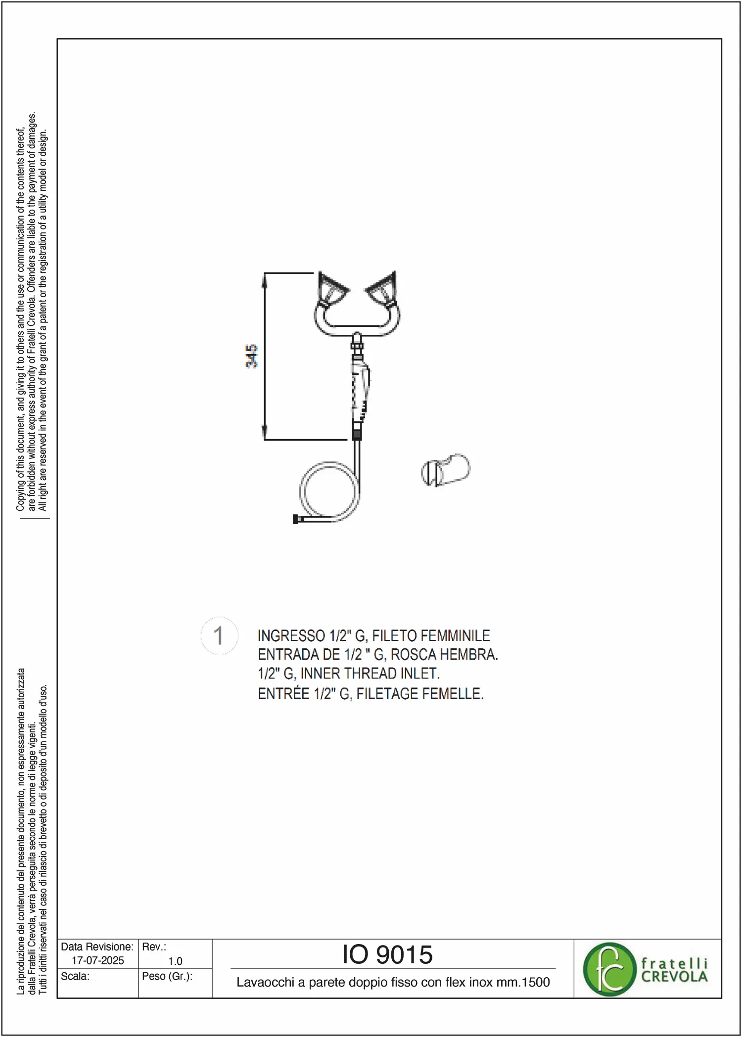 Lavaocchi a parete doppio fisso con flex inox mm.1500