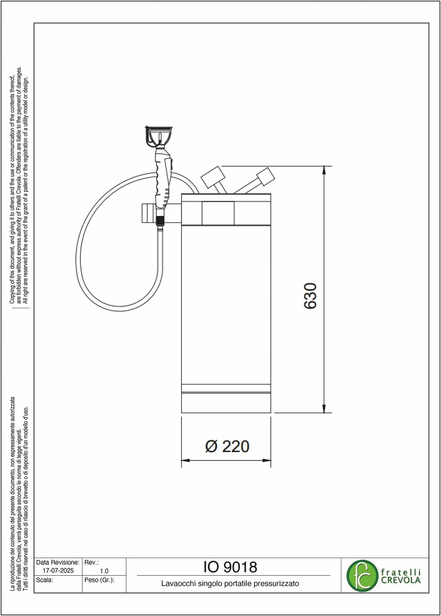Lavaocchi a parete singolo fisso con flex inox mm.1500
