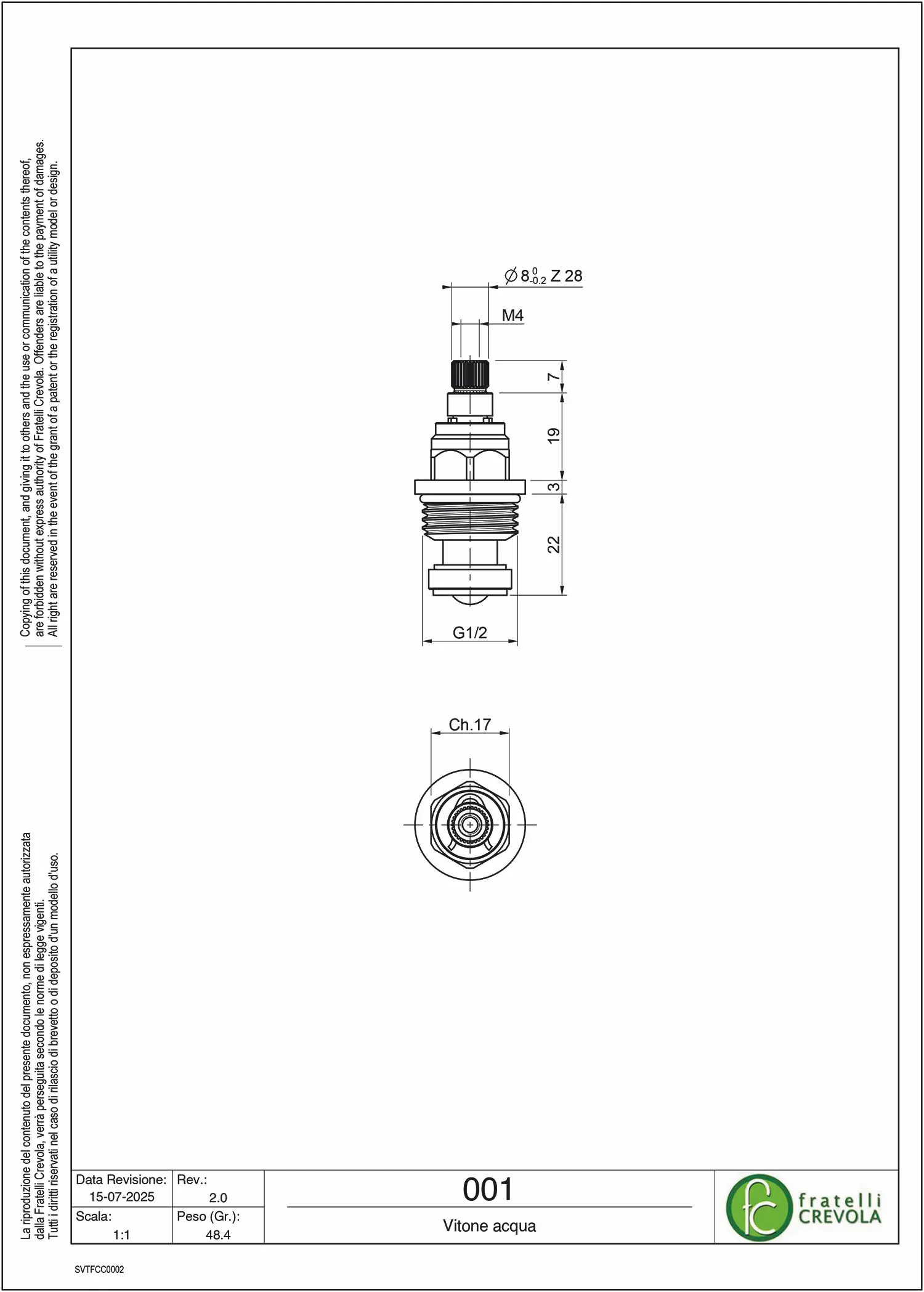 Vitone acqua a bagno d’olio con tenuta EPDM