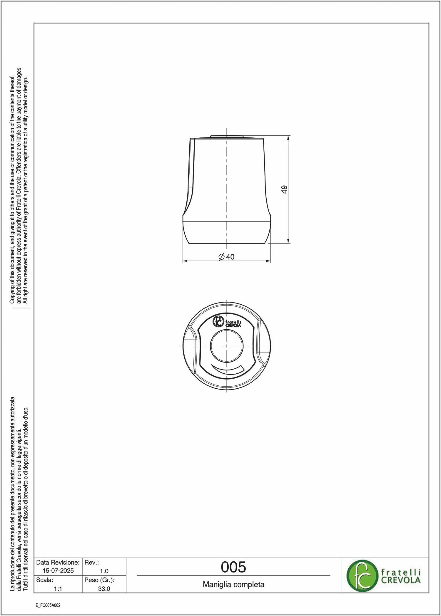 Rosone leggero d.56 verniciato