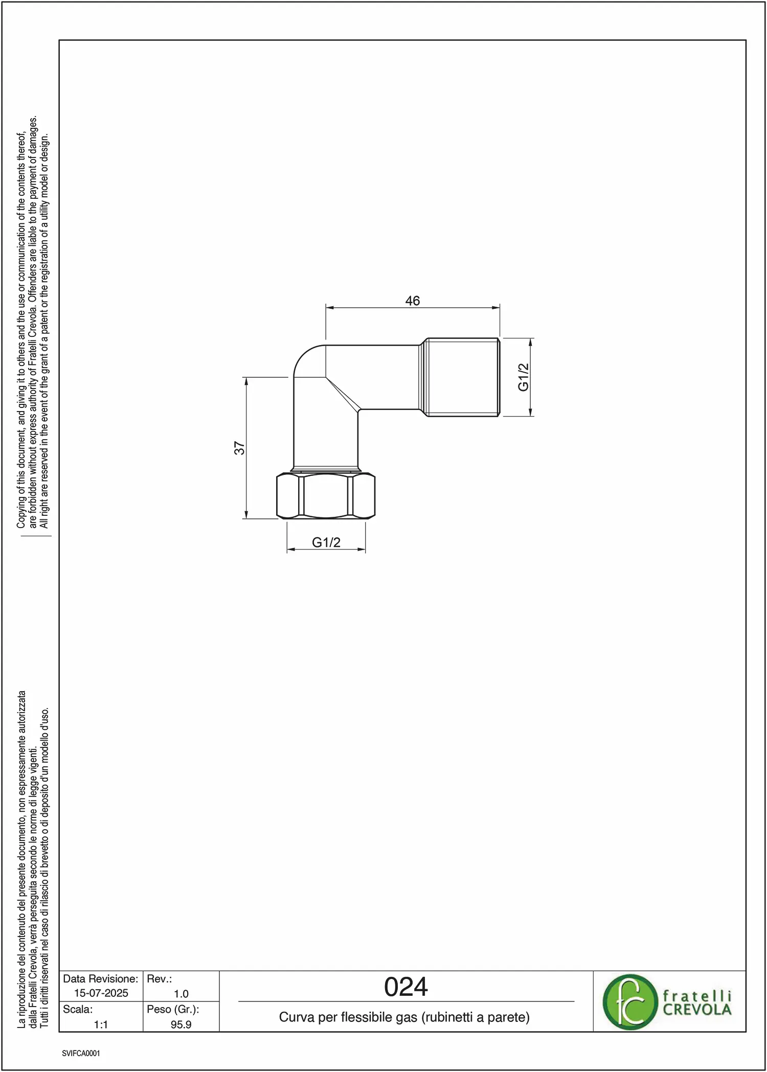 Curva 90° per flessibile gas