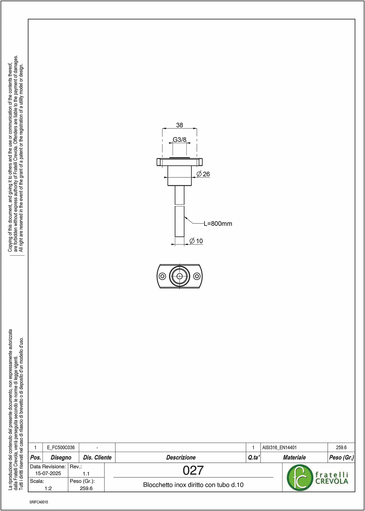 Flessibili M10x1-G3/8″ L.350mm alimentazione monofori