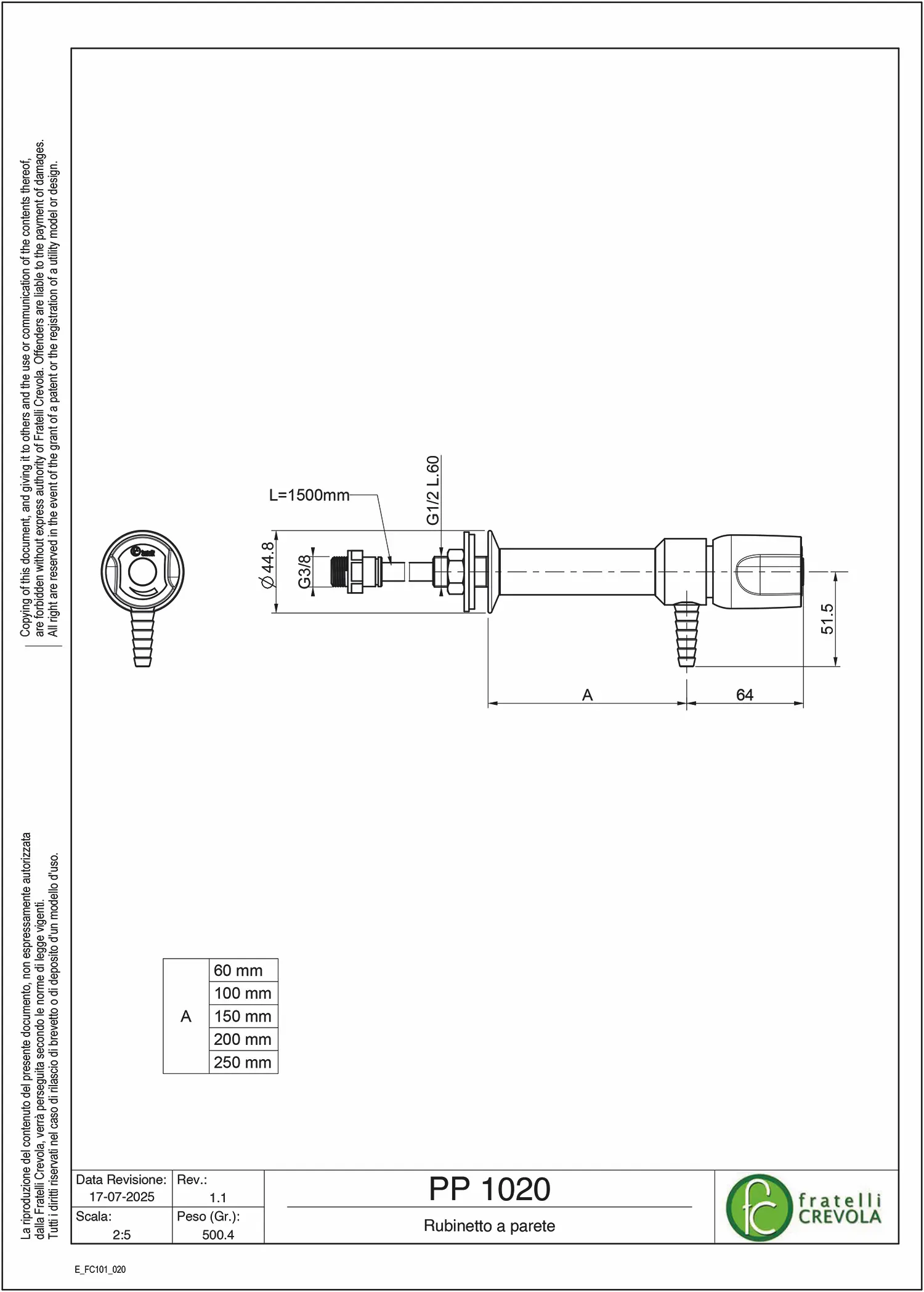 Vitone a bagno d’olio e tenuta in EPDM con trattamento di nichelatura chimica. Maniglie prodotte in polipropilene, materiale antiacido.