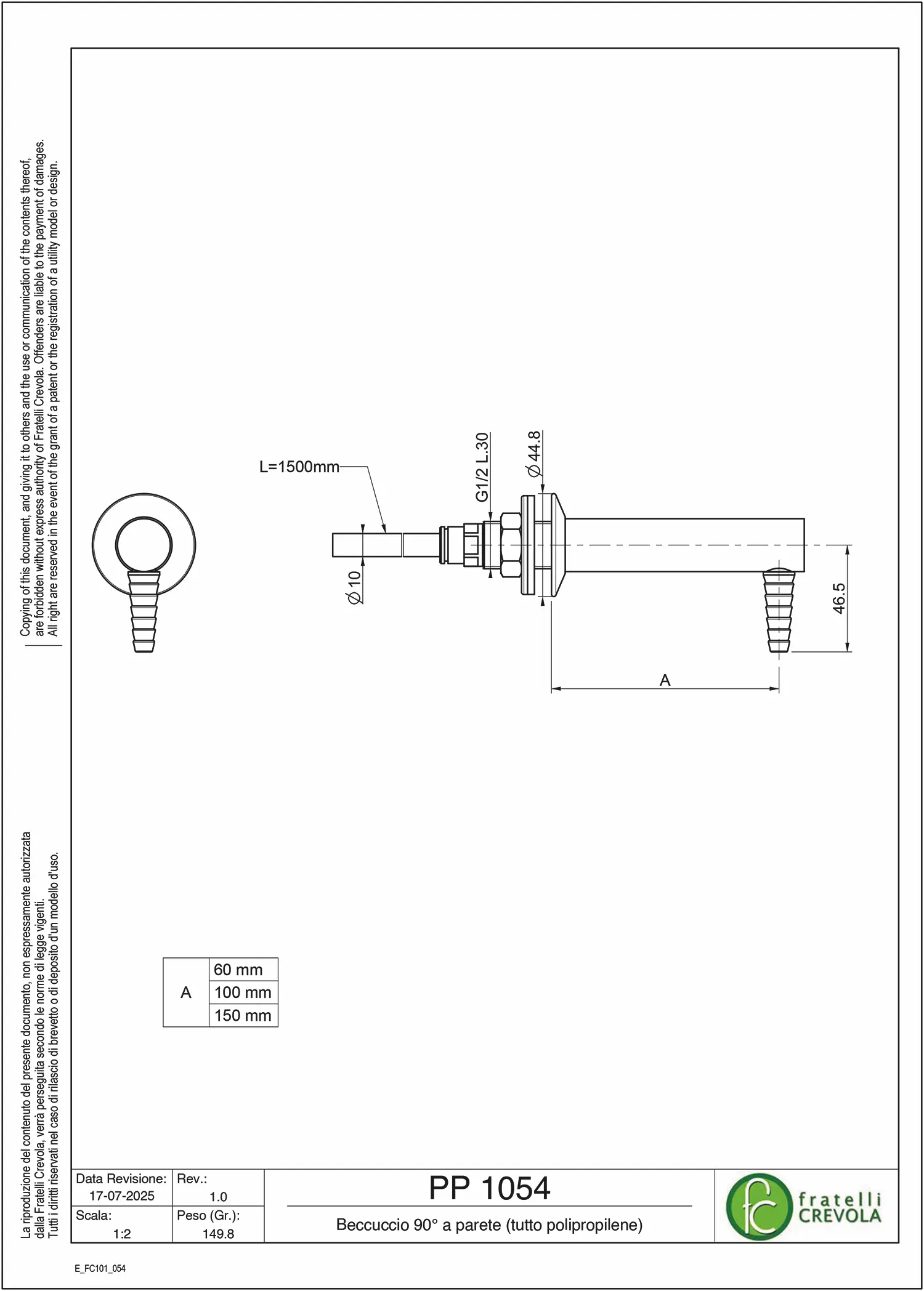 Tubi interno in PE LD Ø 10 x 1,5 L.1500 mm. con raccordo 3/8”.