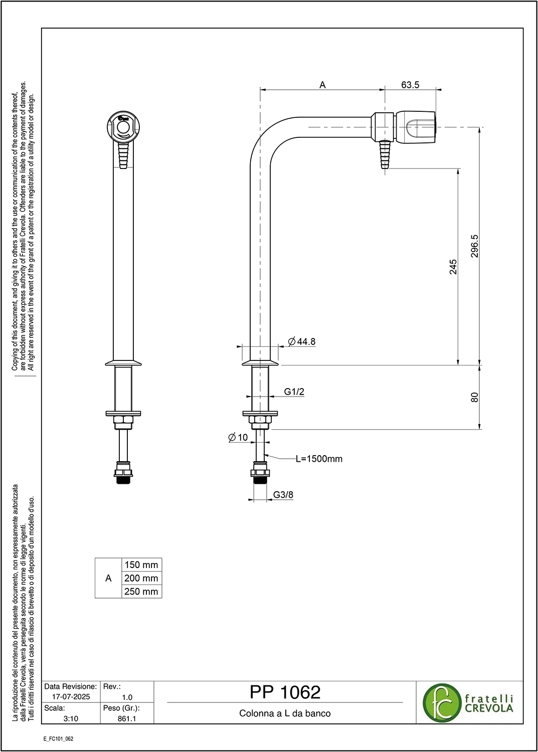 Alimentazione 1/2”, filettature secondo la norma ISO 228/1, classe di tolleranza B. Rivestimento esterno delle parti in ottone con verniciatura a polvere epossidica.