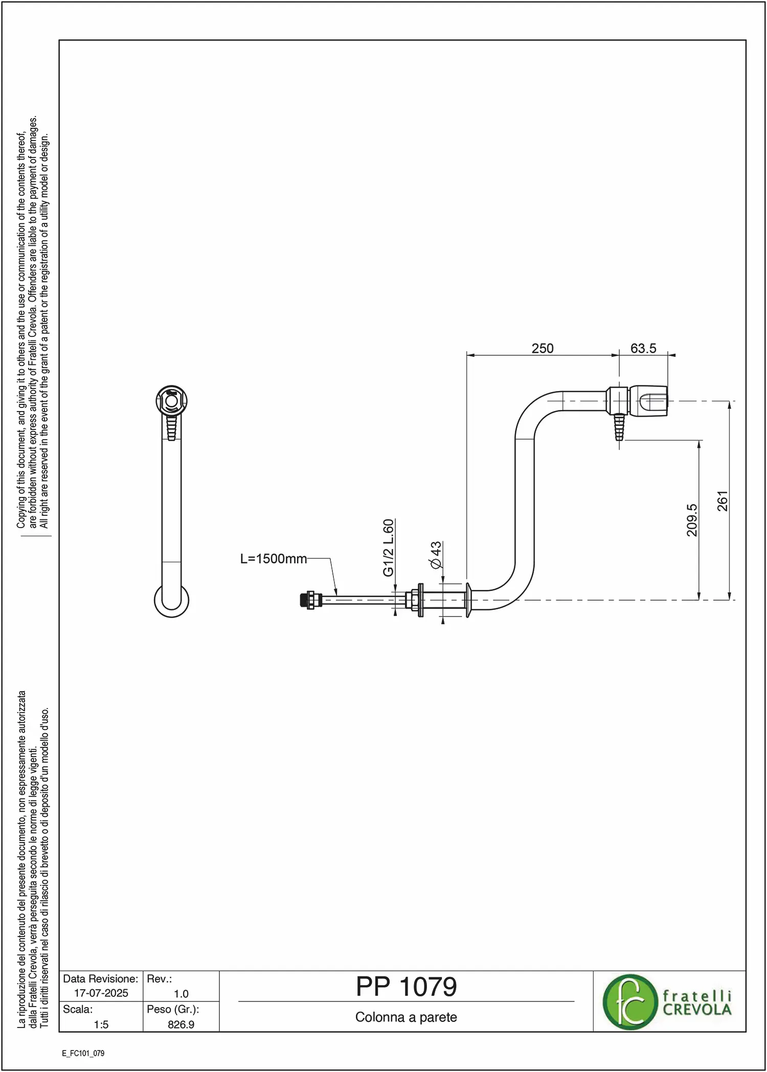 Alimentazione 1/2”, filettature secondo la norma ISO 228/1, classe di tolleranza B. Rivestimento esterno delle parti in ottone con verniciatura a polvere epossidica.